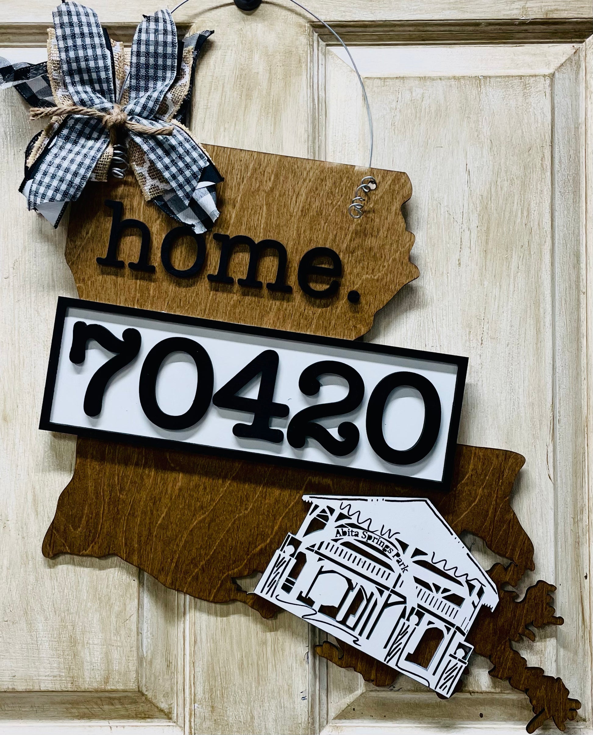 Welcome to Abita Springs, Y'all! Brighten your doorway with this sassy 3D wooden sign, complete with your town's zip code and an iconic item that'll make all your visitors go "Aw' shucks!" Adorn your home with a bit of Louisiana charm!