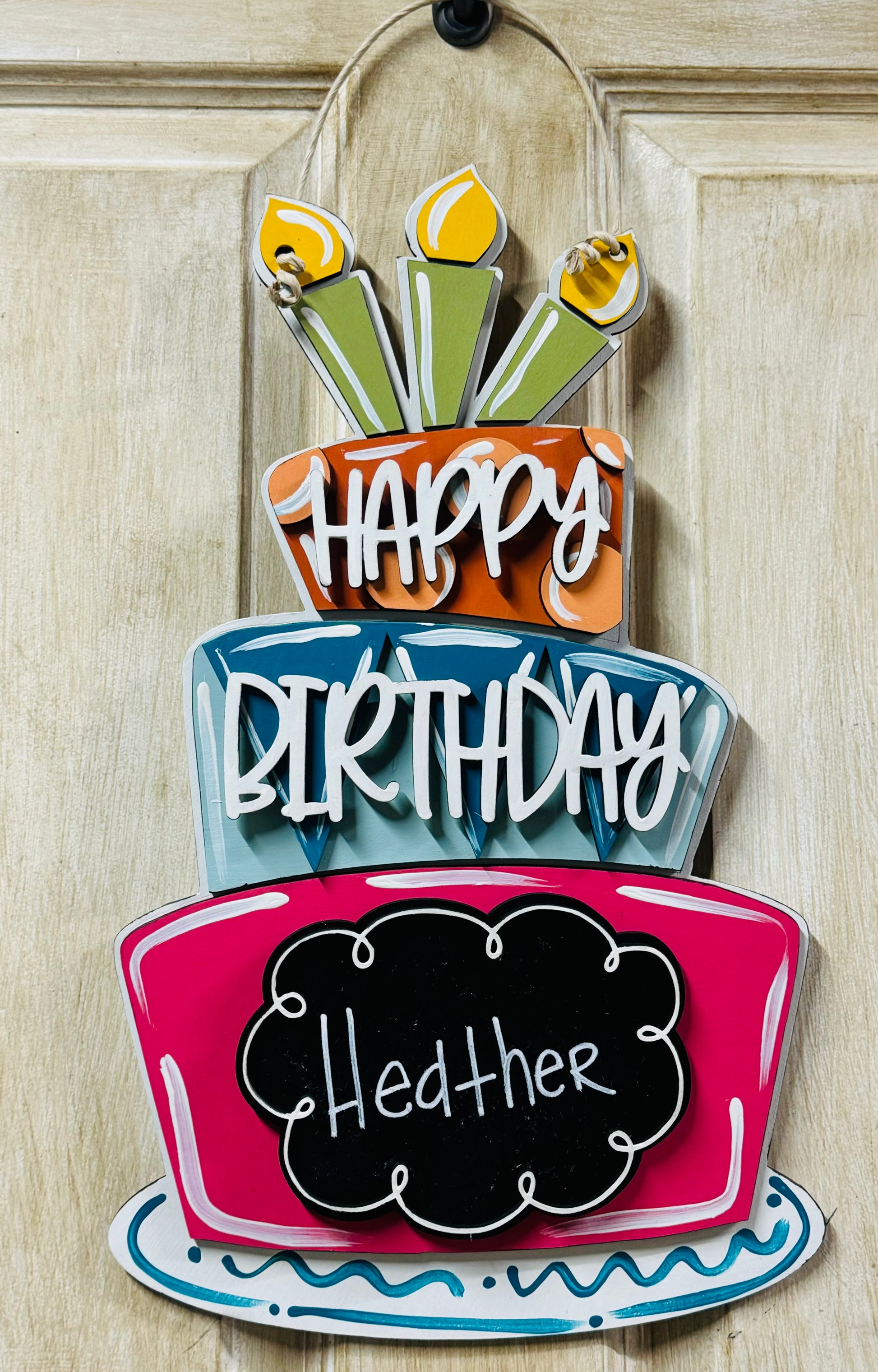 This 3D birthday cake door sign is bursting with color and fun! Hang it up and use the chalkboard tag to add names for a personalized touch. (It's like a real party, but without the mess!)
