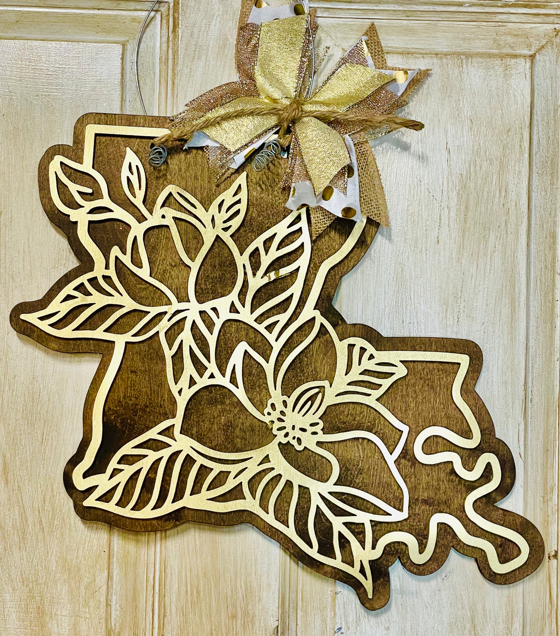 Our 3D Louisiana Magnolia sign is an exquisite piece crafted with precision, featuring a gold finish and an elegant three-dimensional design. This stunning decoration will make a beautiful addition to any living space, bringing a touch of sophistication and luxury.
