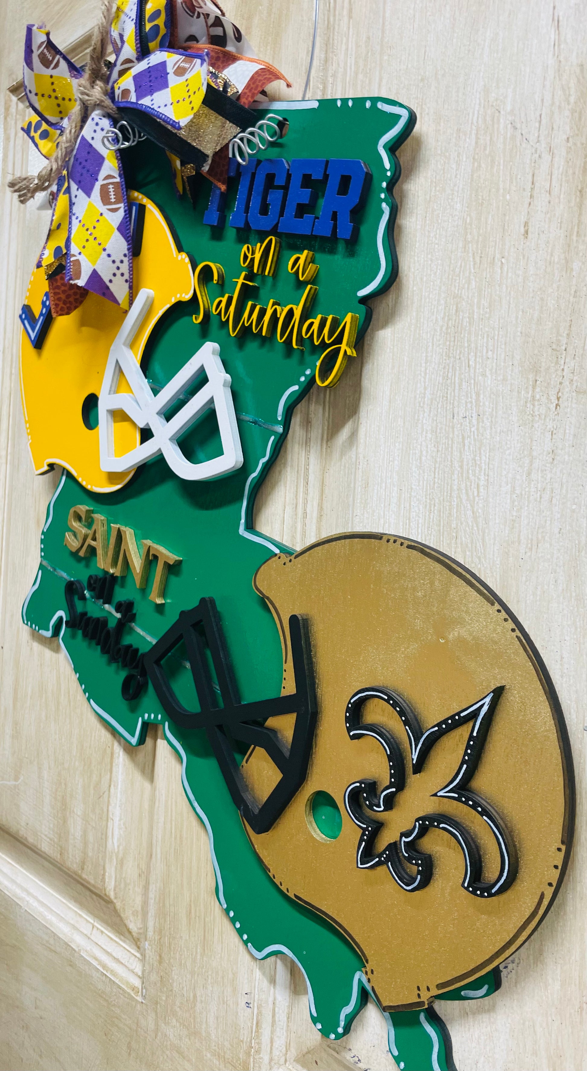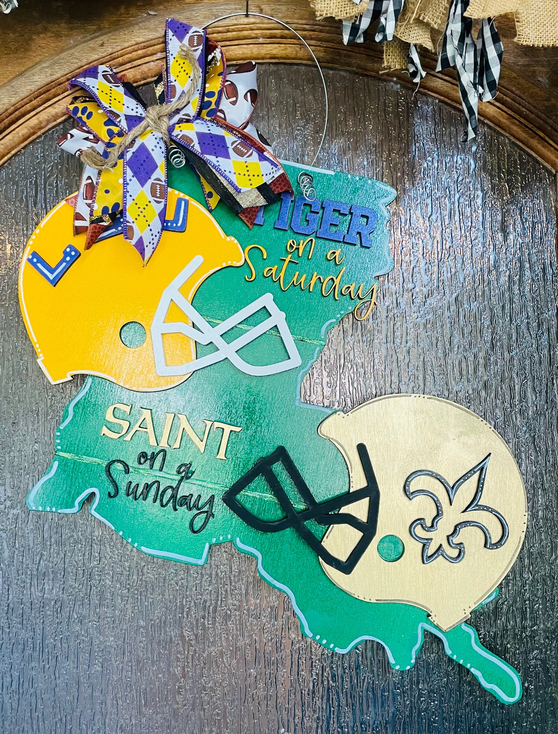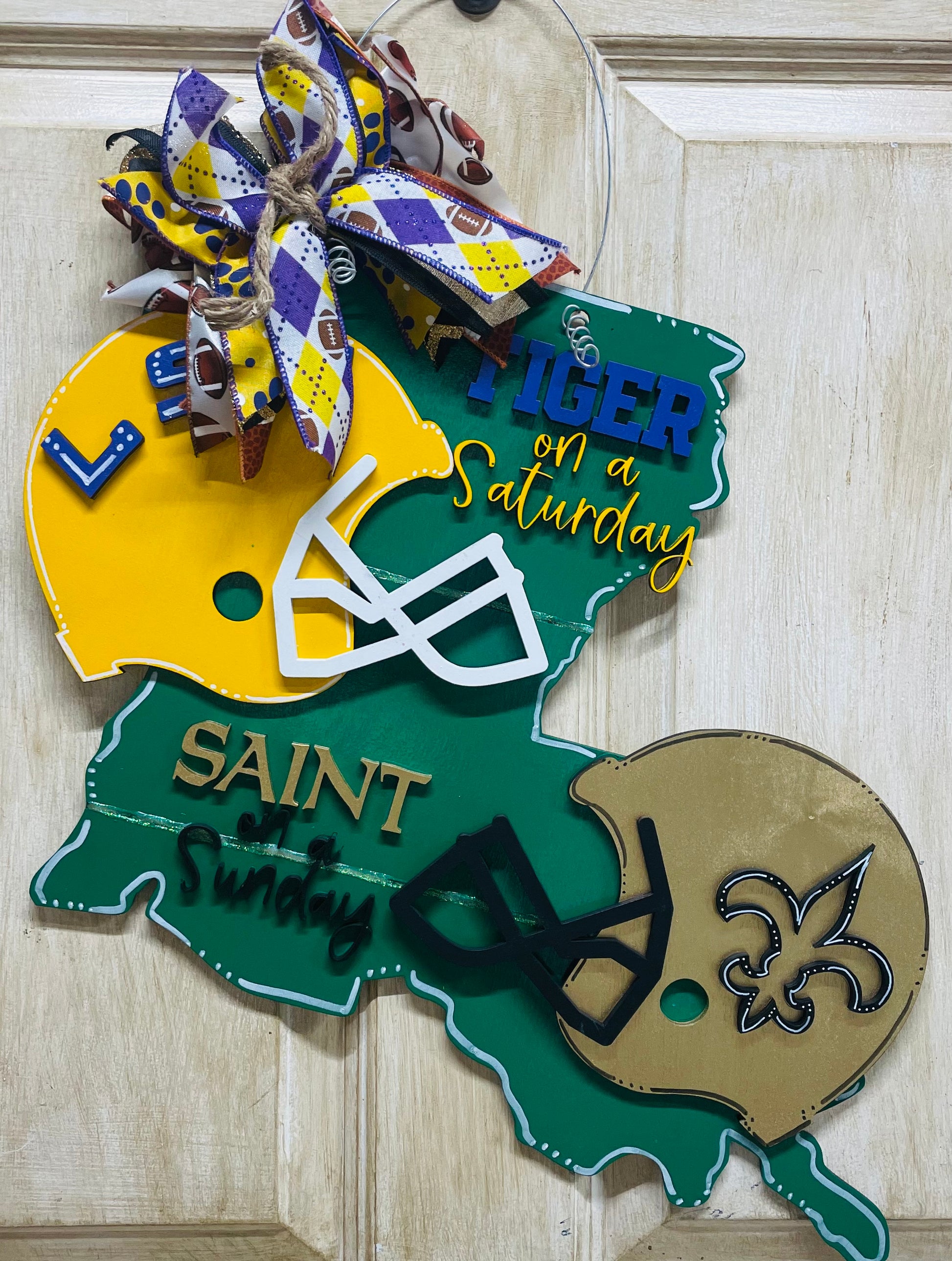 3D LSU Tiger on Saturday SAINT on a Sunday door hanger