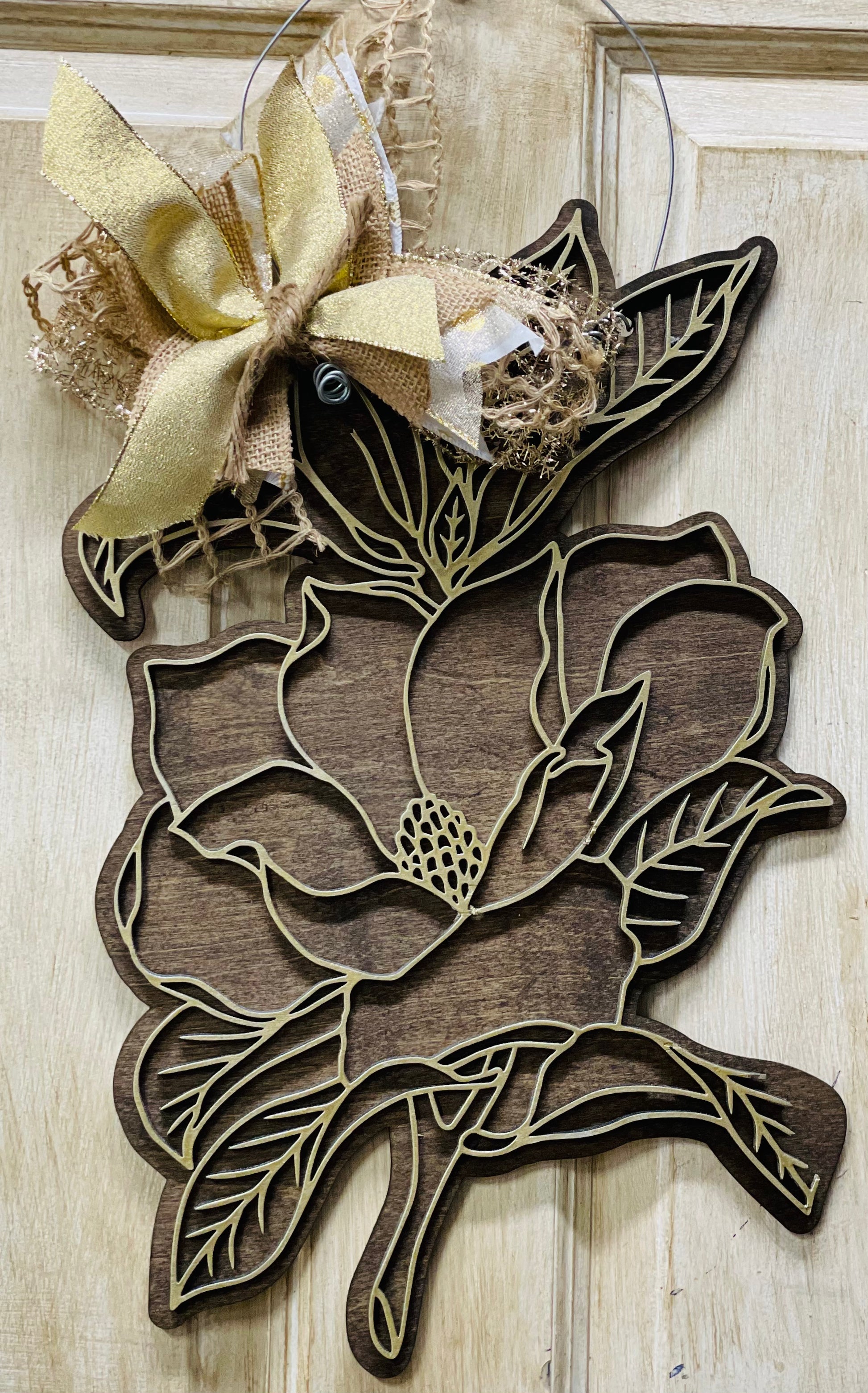 Add a sophisticated statement to your living space with this 3D Magnolia sign, expertly crafted with a stunning stained and gold finish. Enjoy the beauty of the ornate magnolia detailing, and admire the gorgeous reflections of light and shadow which the unique three-dimensional design creates. Make your home a luxurious haven with this magnificent and eye-catching decorative piece.