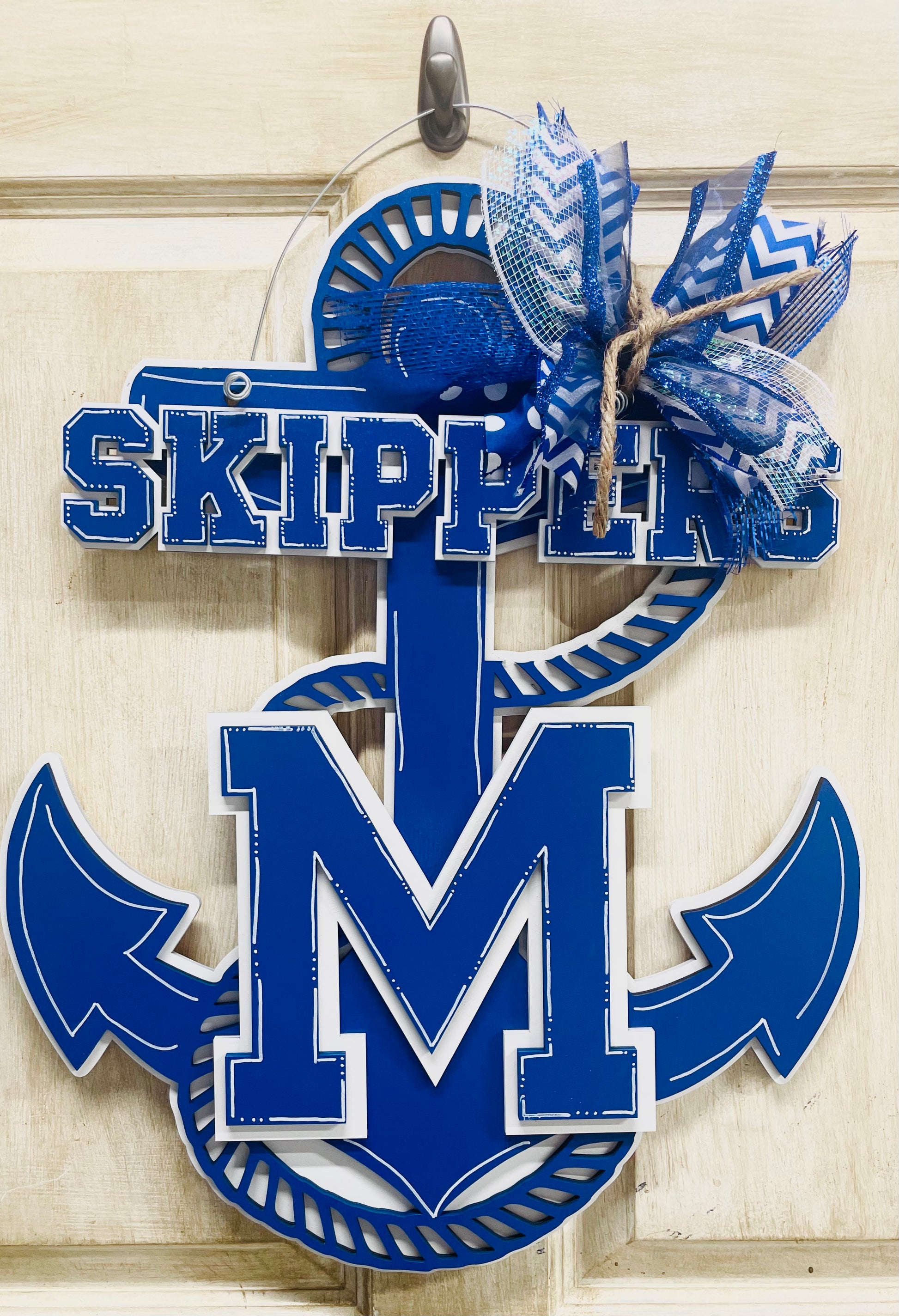 Welcome new students to Mandeville High with this eye-catching 3D Door Hanger! Featuring an anchor with the school's logo, this is the perfect way to show your school spirit - right on your door! Ahoy!