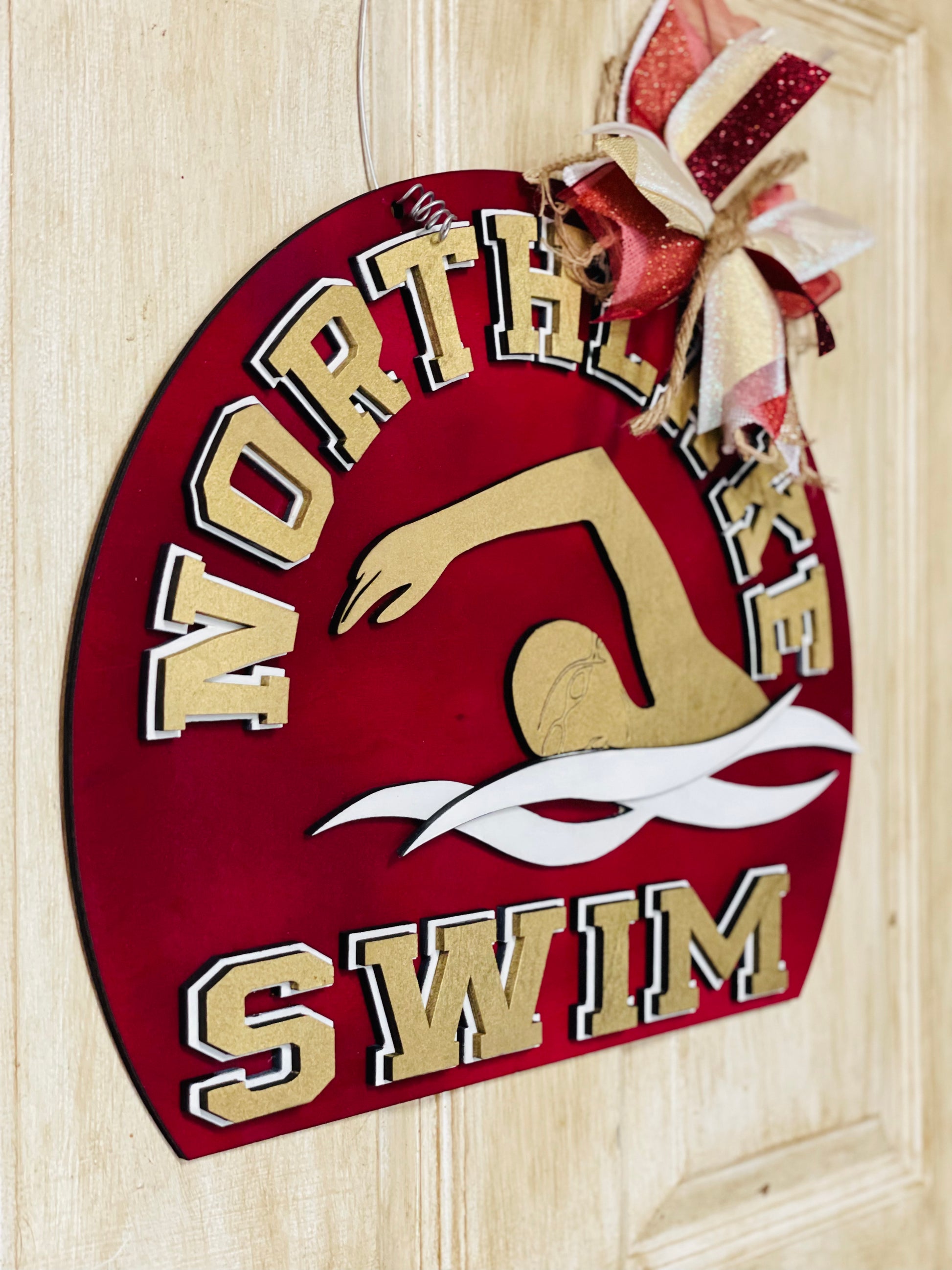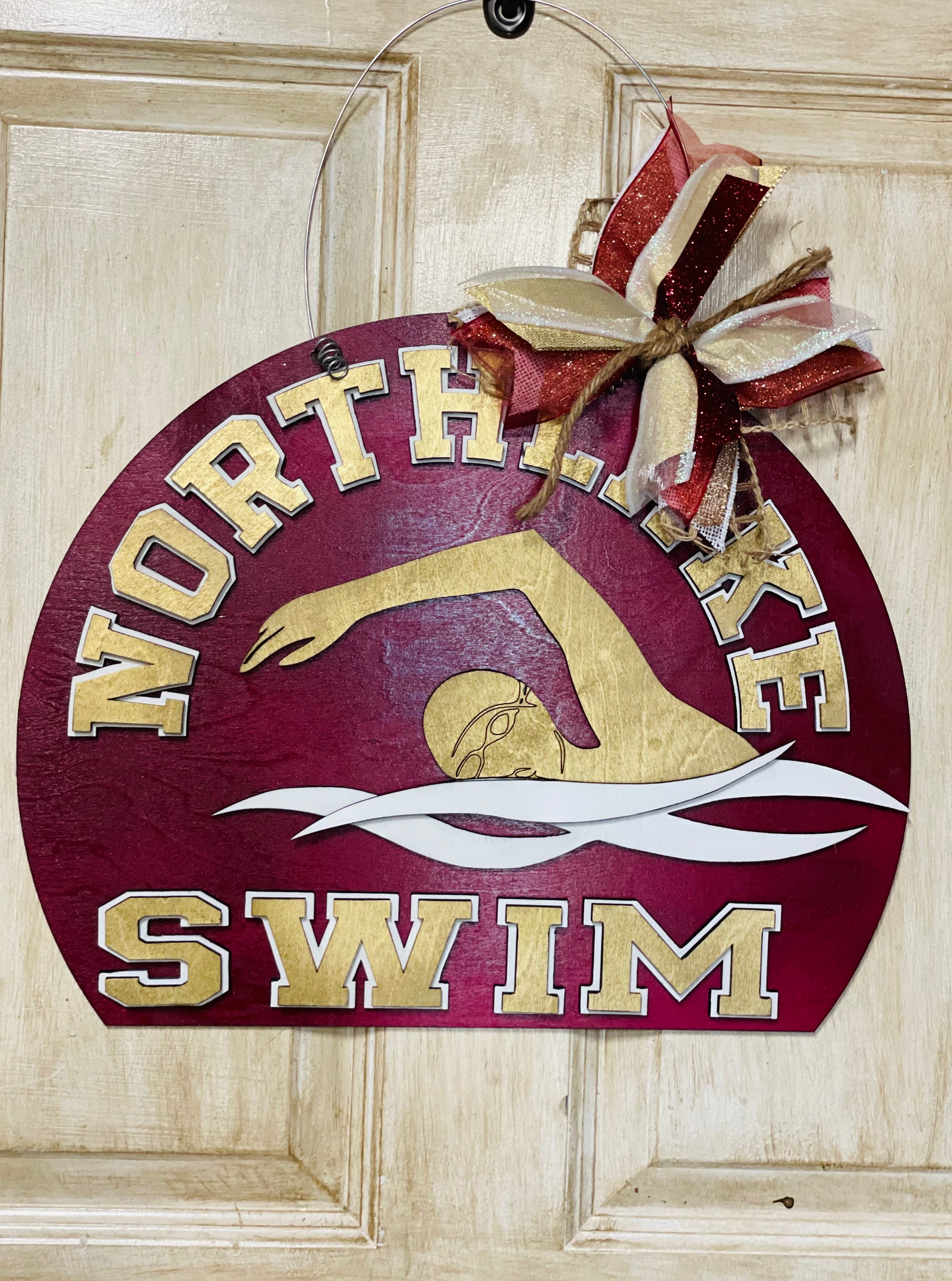 Make a splash with this 3D Northlake Christian School Swim Team door sign! Just hang it up, and everyone will know which school you swim for! Perfect for adding a bit of aquatic flair to your bedroom door. Dive in and show your school spirit! 🐠