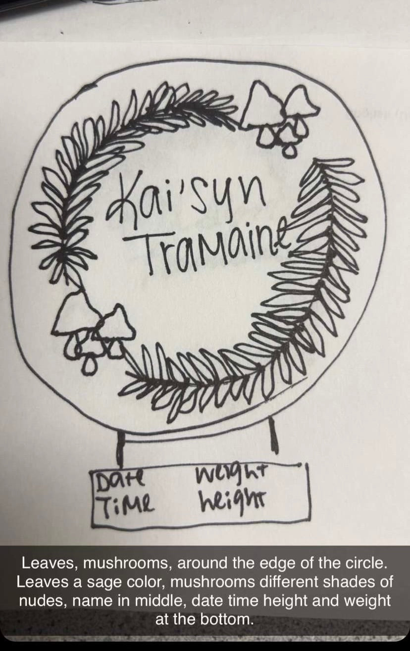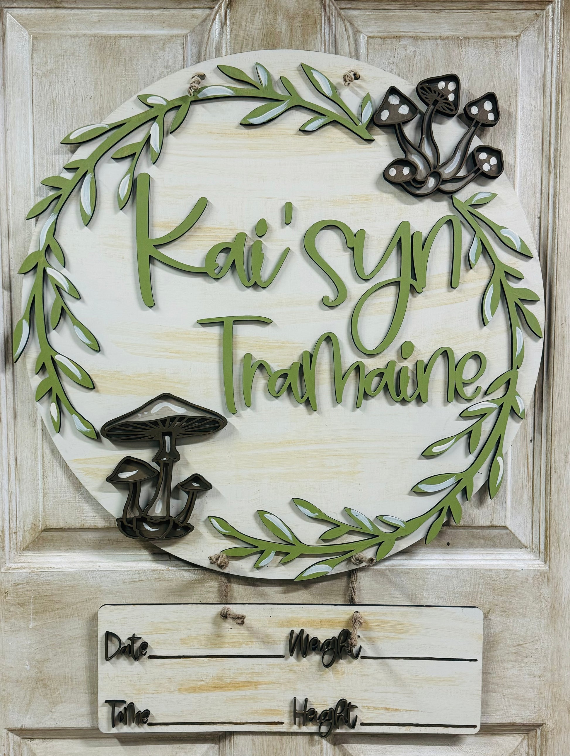 3D nursery/hospital sign & birth stats - leaves & mushrooms