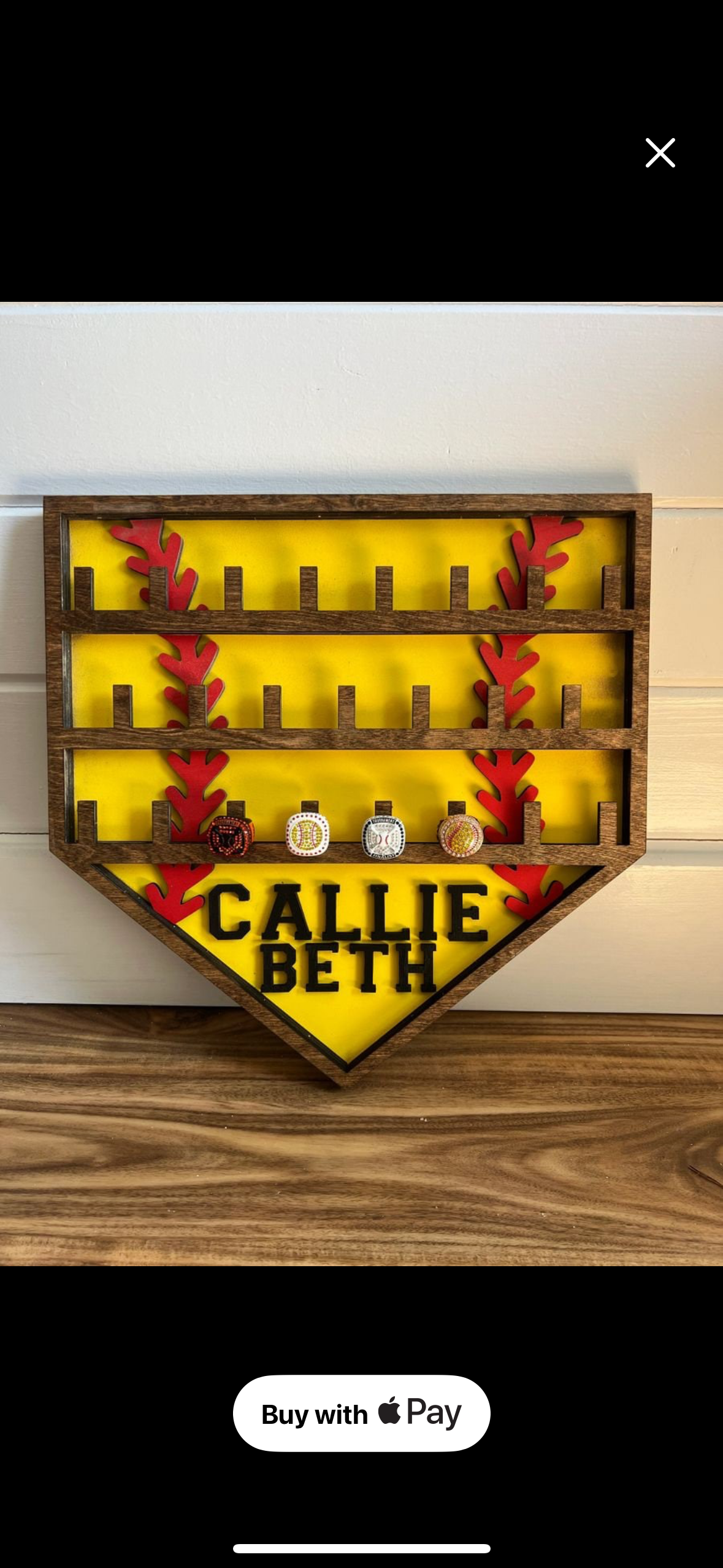 This baseball ring display is the perfect way to show off your champion rings. Crafted from birch wood, it securely holds your ring and keeps it looking great. Showcase your achievements with pride!