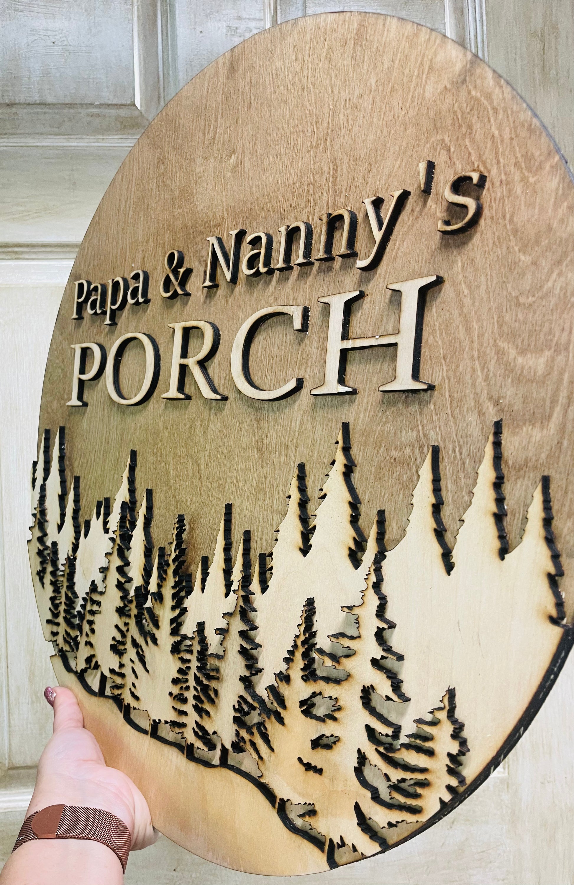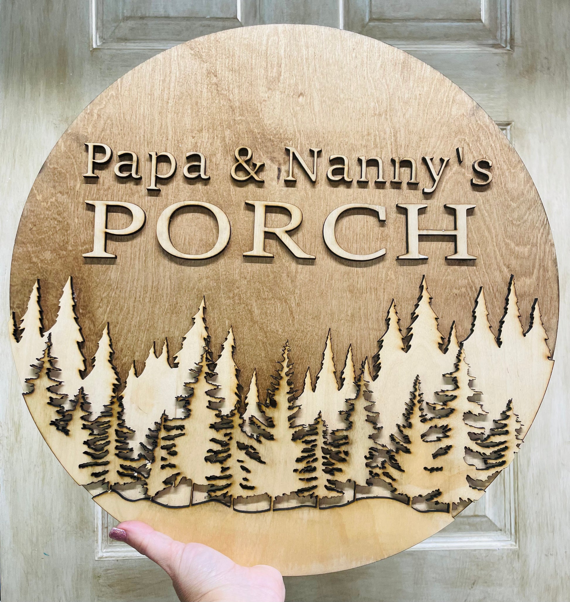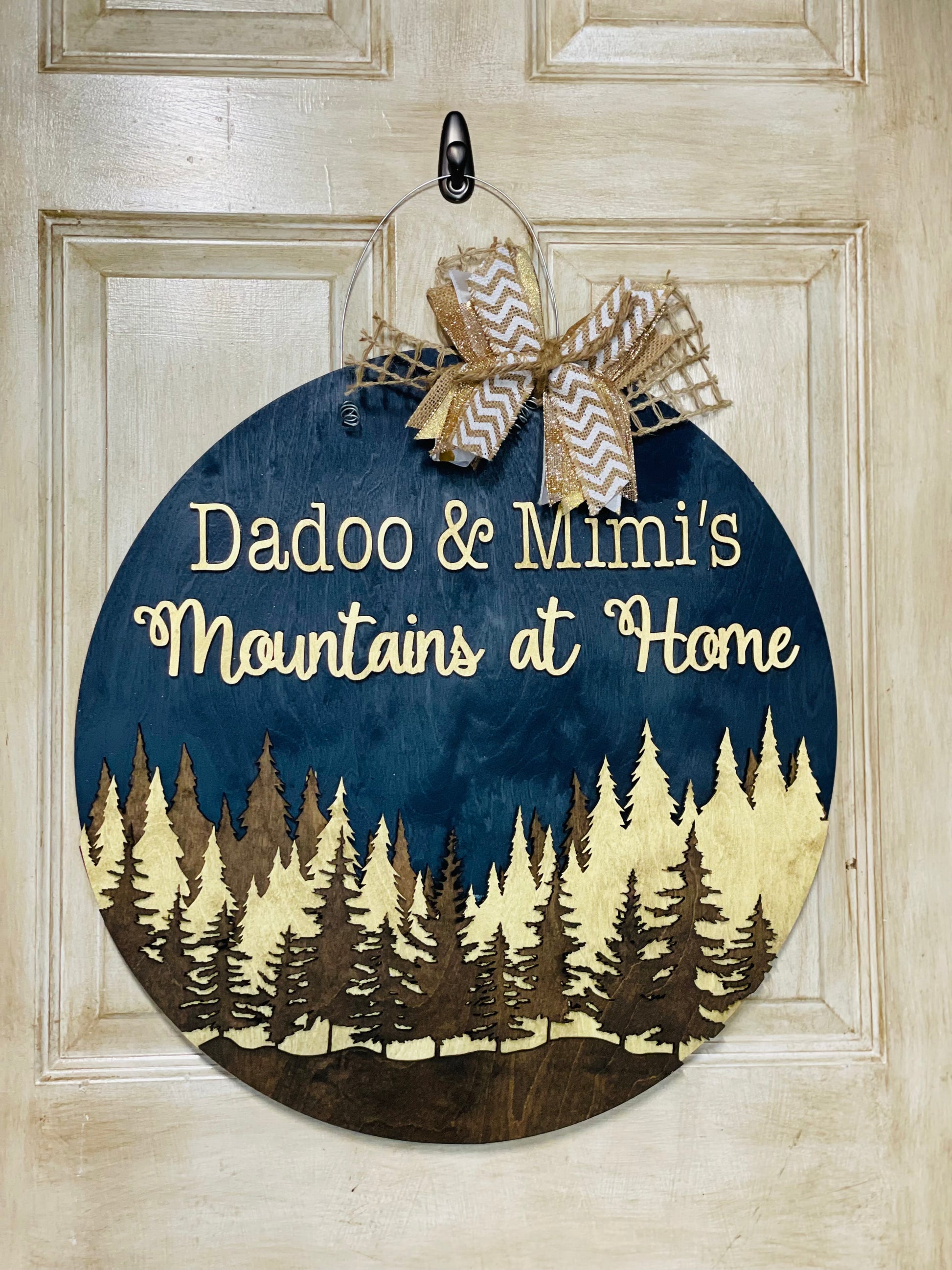 Natural & stain 3D Mountain round sign, customize it to whatever you would like the saying to say.