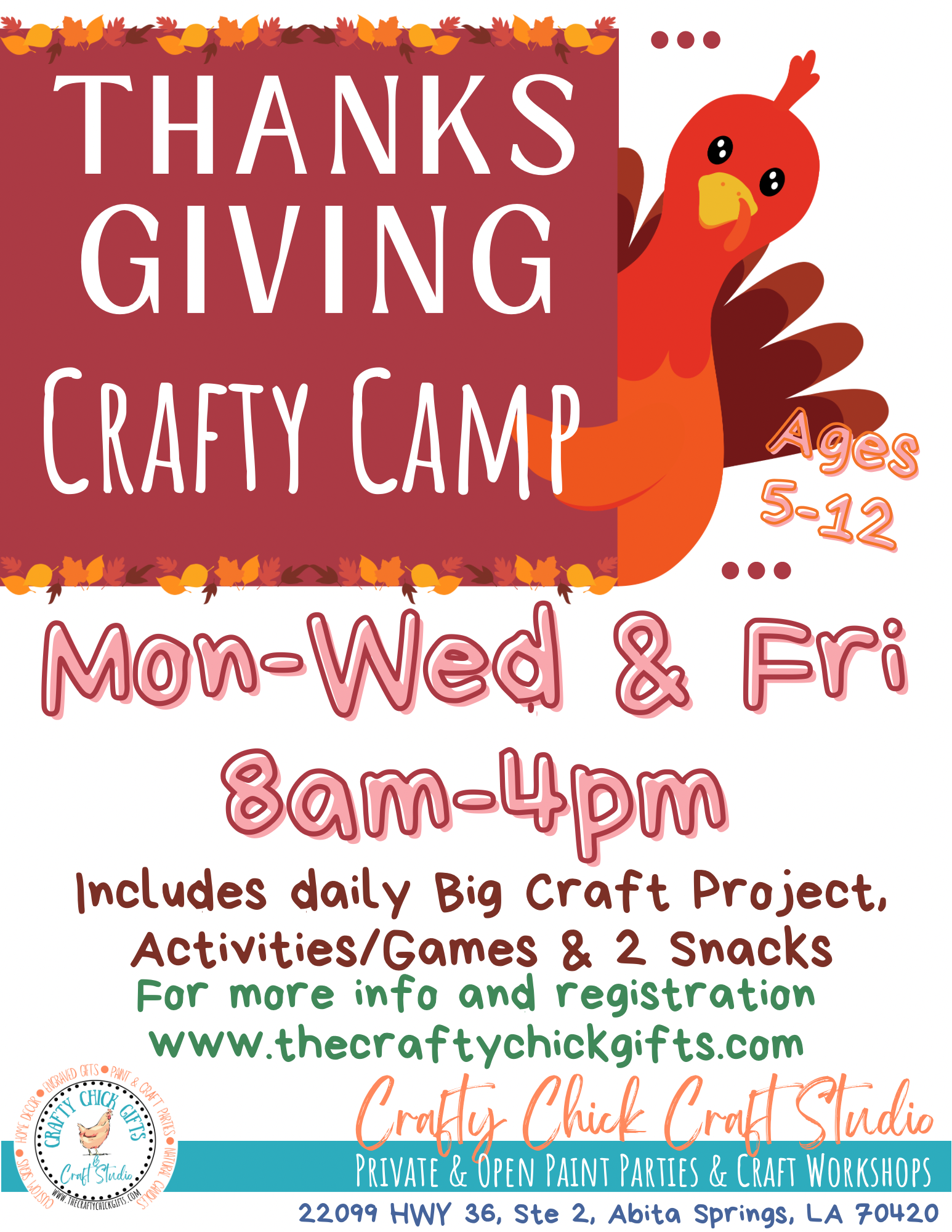 Camp will run from 8am-4pm, Monday-Wednesday and Friday.