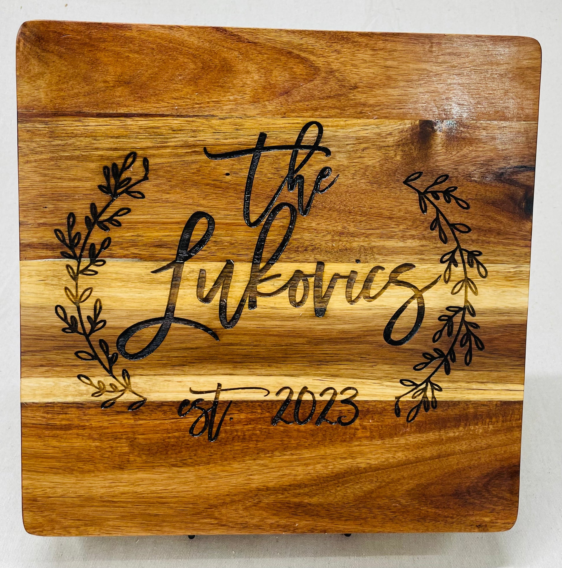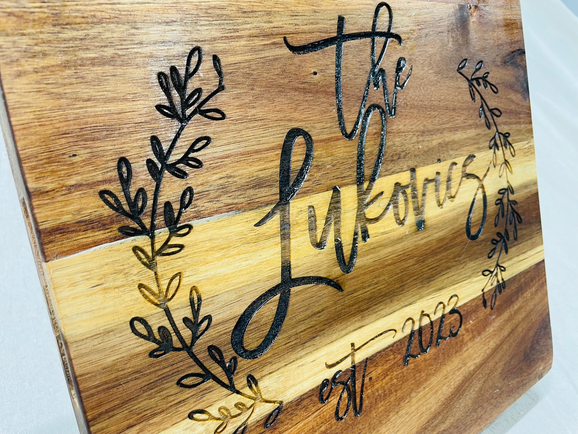 Custom engraved cutting/serving/display board - 15” and 1.5” thick