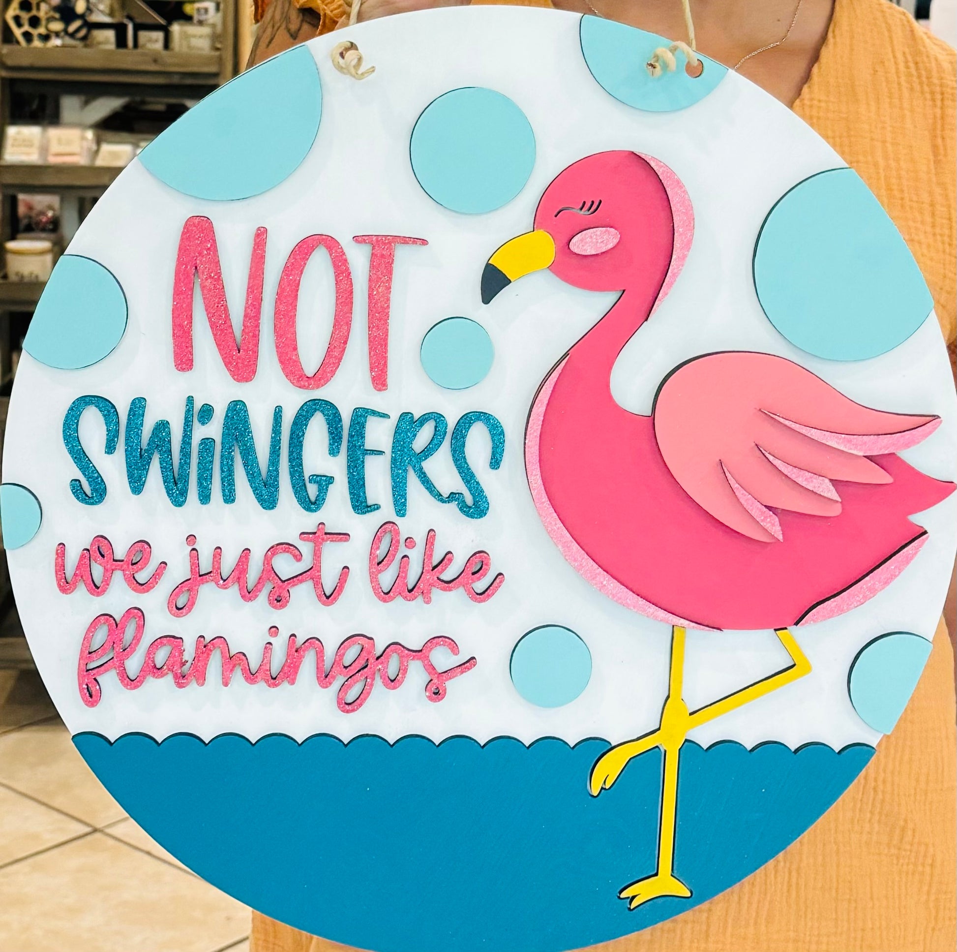 Not swingers Flamingo door hanger