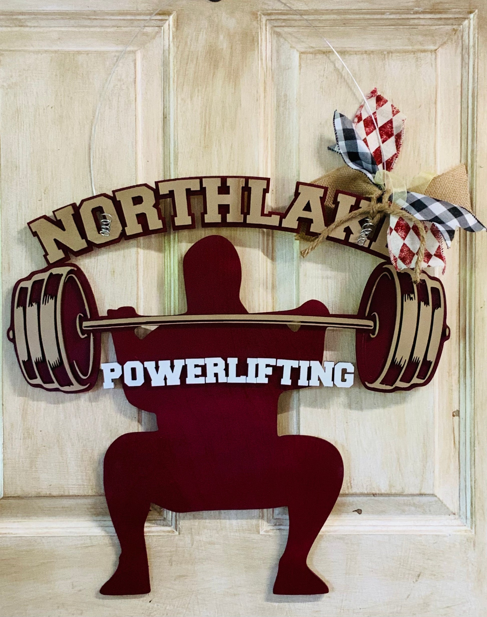 Let the 'powerlifting' begin at Northlake Christian School with this 3D POWERLIFTING DOOR SIGN! It's the perfect way to show your school spirit, showing everyone where the "power" is. Includes all the hot-stuff you need to make a statement -- 3D, Northlake, Christian School, and POWERLIFTING -- exploding off the door! Now THAT'S a big lift!